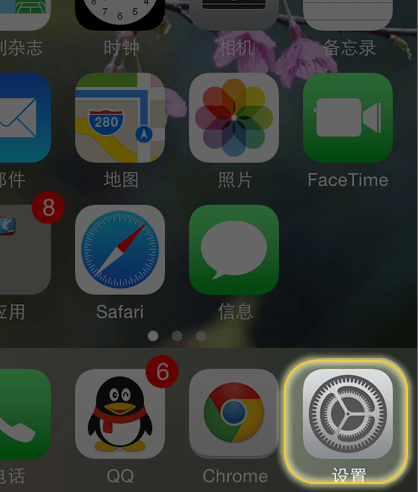如果把 App Store 从系统后台关闭,还是不能打开的话,那就需要修改当前设备的 DNS 服务器地址。接下来回到主屏桌面找到“设置”,并点击打开,如图所示: